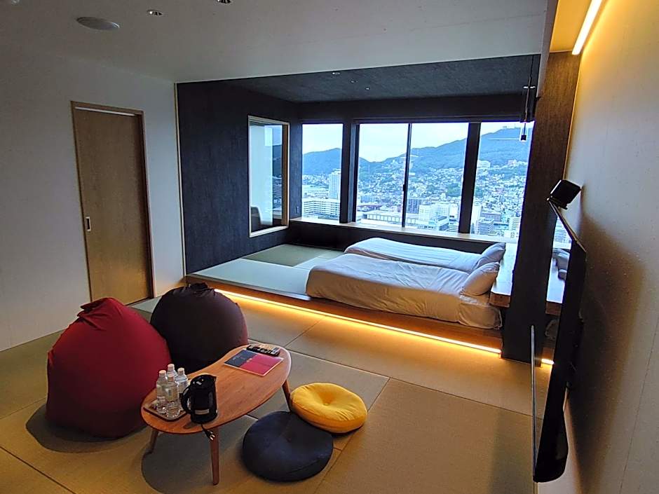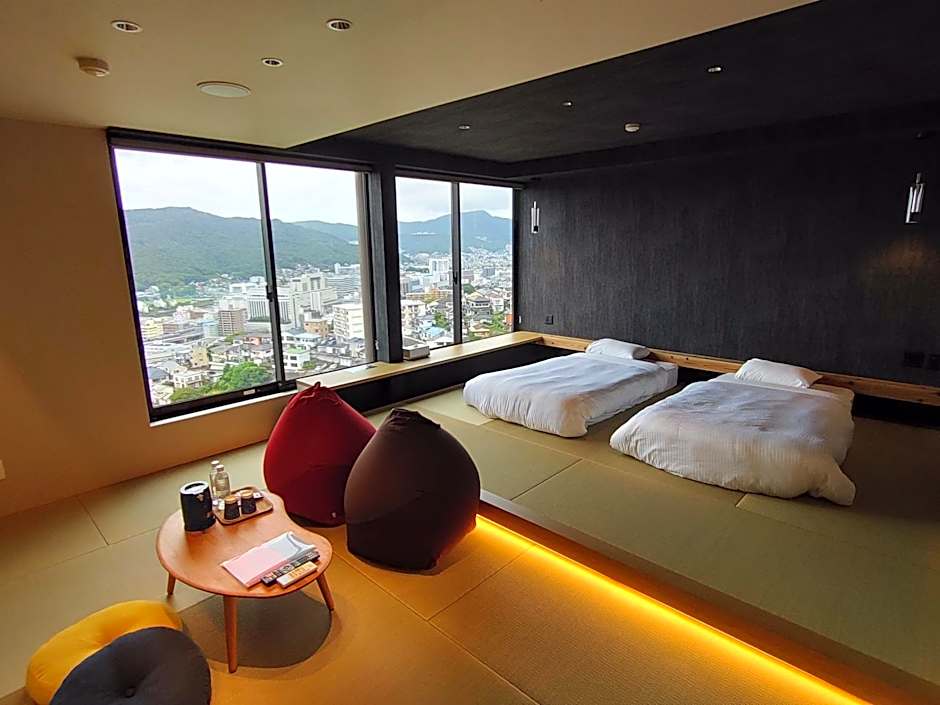 The quadruple room includes a private bathroom, well-fitted with a bath, a shower, a bidet, a hairdryer and slippers. The air-conditioned quadruple room features a flat-screen TV, tatami, an electric kettle and yukata. The unit has 2 beds and 2 futons.